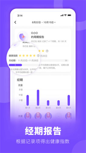 3、运用了大数据分析记录数据,可以量身定做经期统计分析报告。