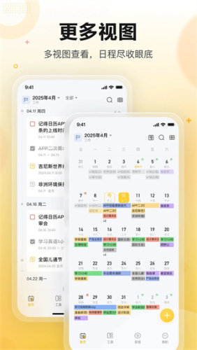 4、不同形式的日历视图可根据自身的喜爱或习惯来作为每日的清单检查,提高效率安排。