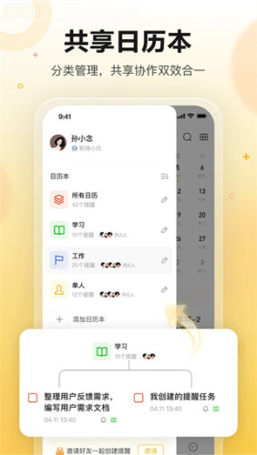 3、不管是好友、家人、同事们都可以通过所内置的共享日程来进行各种事项安排;