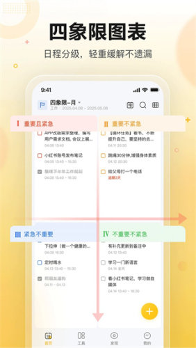 2、可纳用四象限图表来添加与记录个人待办事项,一切行程变的更清晰,分类更清楚;