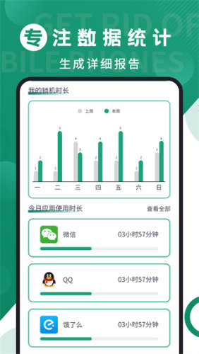 2、能够查看自己的历史手机使用数据,并更加了解自己的手机使用习惯;