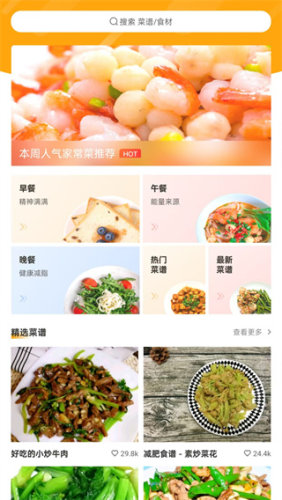 3、特别有三餐推荐功能,只需输入自己的饮食需求,自动的推荐合适的菜谱教学;