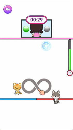 4、还有反弹玩法要通过点击发射右侧的针然后利用墙壁反弹,你要小心的避开场景中的小猫。