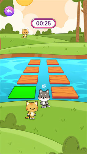 3、玩家在过河关卡需控制角色朝向,不断地点击实现跳跃,最终成功到达河的对岸;