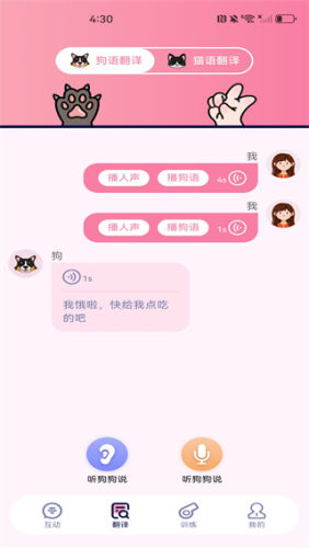 3、使用录音功能录制和翻译人声,实现了双向交流,宠物轻松就能听懂你的话;
