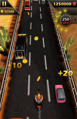 玩家将操控摩托车在不同赛道中疾驰通过精准转弯和加速来获得优势。比赛中需要避开障碍物、掌握漂移时机并在直道上全速冲刺,完成任务即可赢得比赛获得金币用于购买新车型或升级引擎、轮胎和涂装。部分关卡会出现极端天气和复杂地形如暴雨、沙尘或夜赛,为竞速增加难度和刺激感。在挑战模式中玩家需在限定时间内完成任务,而无尽模式则考验玩家的极限耐力。每一次冲线都充满成就感,让玩家体验速度和技巧的驾驶快感。
