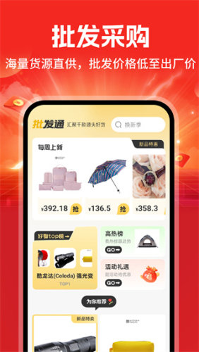 《低价批发助手》是一款专为为批发采购用户而打造的移动购物平台APP。APP汇集了全国各地最优质的货源,为用户提供方便的一站式批发采购解决方案,让用户拥有多种商品选择与便捷的购物体验,提供了应有尽有的商品,你要找的都有,还有特价活动得商品,也有各平台的优质好物,满足用户多样的购物需求。