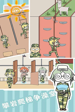 3、军训完成后,想要冲一个热水澡,必须学会攀岩或是爬梯的方式,采用了现实生活的题材元素。