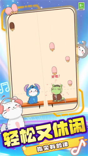 《我是小猫猫双猫音乐大作战》是一款最近非常火爆的休闲音乐游戏。游戏设置了多种有趣风格的音乐曲目,如流行歌曲、经典音乐还有原创作品。还设计了丰富多样可爱的猫咪皮肤,包括了黑猫,蒙蒂猫,丸猫,配音猫,乔利猫等,让玩家可以通过挑战收集更多的金币,然后在喵喵商店够买并解锁自己喜欢的猫咪皮肤。