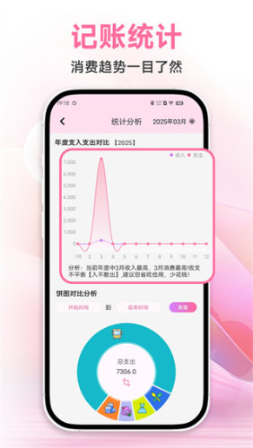 2、完善的统计分析记账数据,让用户可以清晰的查看自己的消费趋势,避免额外的开销;