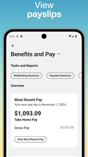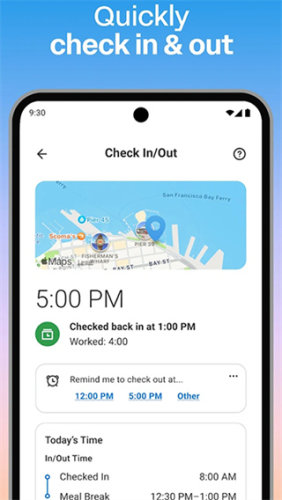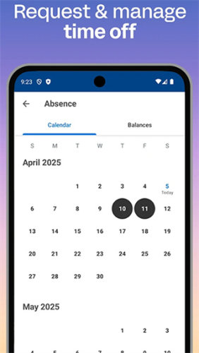 • 检阅您的薪资、检视或申请一般休假、上班签到/签退、提交您的工时记录,以及快速提交费用。