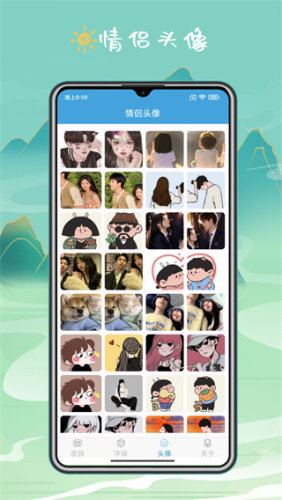 2、在界面的顶部栏中汇集了各种键盘皮肤、字体以及头像;