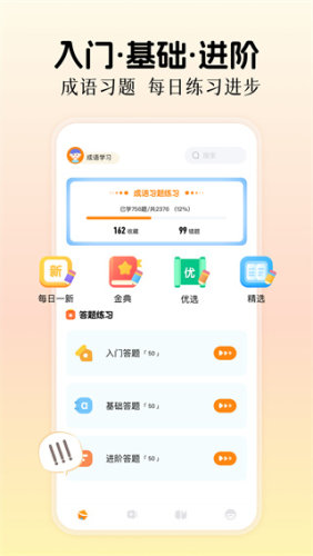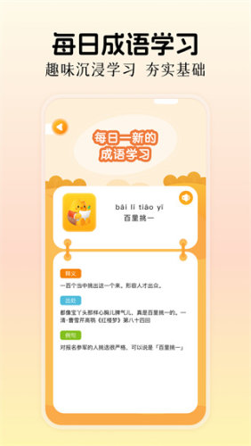 2、这款成语学习应用将是你的得力助手!它以丰富的内容和趣味化的学习方式,让你在轻松愉快的氛围中学习成语。