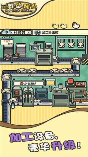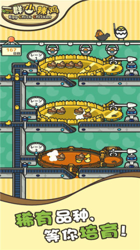 一群小辣鸡是一款以小鸡为主题的经营养成类游戏,采用了可爱的治愈画风。玩家扮演养鸡的农场主,通过养鸡来走上致富之路。专心照顾小鸡,培育各种稀有品种的消极小鸡并照顾他们的生活起居。玩法是需要管理鸡场,通过培育鸡蛋、孵化小鸡、出售肉制品赚取利润,然后升级鸡场的所有设备,成为富有的养鸡大亨。
