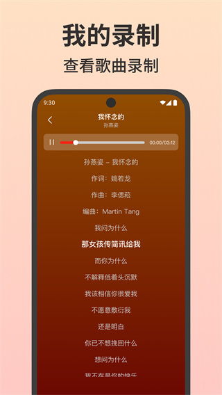 3、在演唱中可以同步显示录制的进度以及歌曲信息,轻松的直接查看并获得结果;