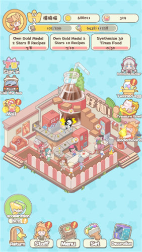 《喵小镇餐厅》是一款轻松好玩和休闲的模拟经营类游戏,提供了沉浸式的游戏体验给广大的玩家,让玩家爱不释手。玩家在游戏力将会扮演成为一家采用以猫咪为主题餐厅的经营着,变更将会置身在一个非常美丽的海岛上。游戏的玩法很轻松,首要任务是与其他的猫咪携手开启一场精彩旅程,需要终点小镇,建立丰富的餐厅和店铺,以便能吸引更多游客前来参观和消费,确保能满足游客的需求和提供独特的体验和欢乐。