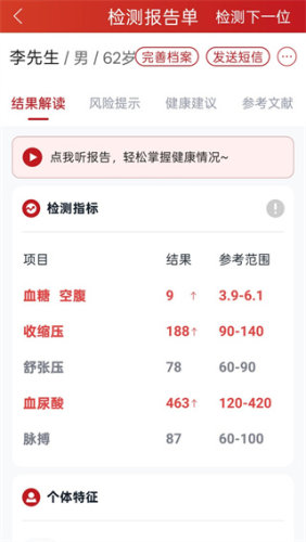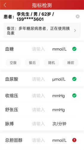 3、拥有血糖、血脂、尿酸、BMI等多项指标的检测,帮助用户全面了解健康状况;