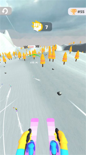 4、与好友实时竞速,互相切磋滑雪的技巧,闪避障碍物的反应力,增加游戏互动性。