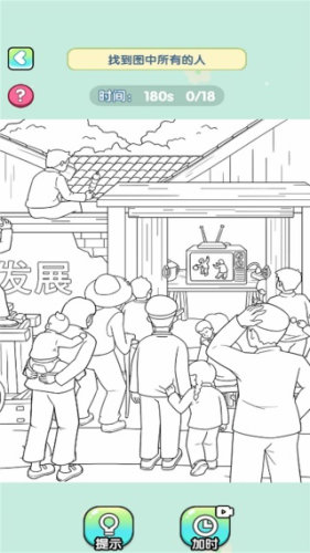 4、其中一个关卡的图片中,有着一款怀旧的电视机,主要的目标就是找出所有的人,快速标记就能完成。