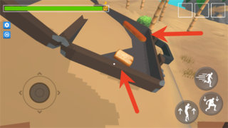 1、进入游戏后,点击虚拟按键来操作角色寻找各种食物,装备和氧气瓶等等。