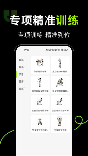 3、全方位的健身动作库,比如按手臂、胸部、核心、下肢等部位分类,每个动作都有图文并茂的指导。