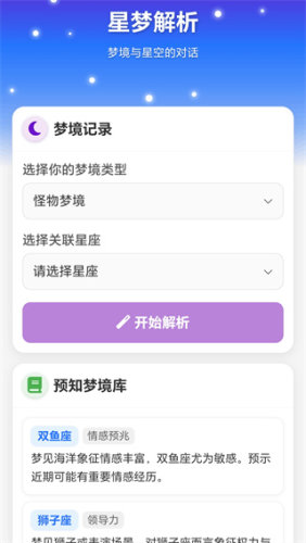 3、梦境解析区提供正负面寓意,标注梦境是否积极预兆,结合星座运势,轻松捕捉好运信号;