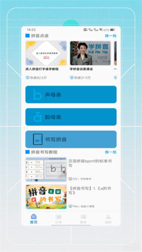 3、设有动画人物视频教学,不仅仅吸引了儿童学习的注意力,更让学习过程生动有趣,快速的让儿童学习拼音认字。