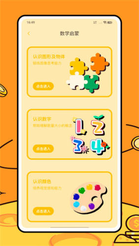 1、界面充满色彩而且操作也简单,合适低龄孩子认知特点并可以自主探索学习;