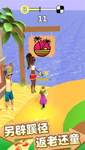 《跑跑时光机》是一款休闲跑酷手游,需要通过拾取道具在赛道上前进,躲避各种障碍物来顺利抵达终点,有趣的是可以体验年龄变化的玩法,融合了跑酷的刺激感和时间的选择元素,并过程中会遇到影响年龄的道具而需要做出选择来保持年轻以便在到达终点时成功通关,如果选择错了会因为过早衰老而失败。