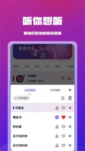 2、极高的自由度,用户可以根据自己的心情选择播放列表,享受音乐的乐趣;