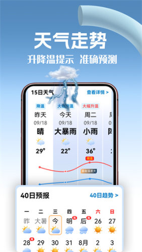1、精准又便捷的天气预报内容,同步解当下最新的降水信息、风速、空气质量等数据;