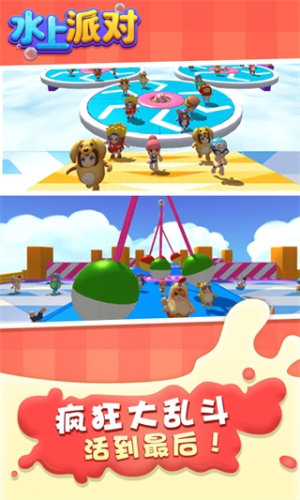 《水上派对糖豆人淘汰赛》是一款充满趣味感和好玩的休闲竞技类游戏,采用了经典的糖豆人为核心题材,深受许多玩家的喜爱。游戏的玩法很有趣,玩家将会体验角色扮演化身成为一名冒险家,需要在丰富多样的关卡力进行各种挑战,可支持多人竞技的玩法,于其他玩家展开激烈的比拼,非常丰富的游戏模式让玩家自由地进行选择,不同的玩法包括了碰碰撞,疯狂乱挡等等,需要不停地进行挑战将所有对手都渐渐淘汰,成功到达对岸就可完成任务。