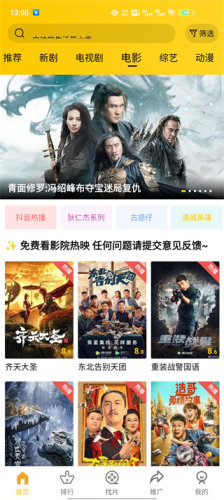2、首页还会根据当前流行的影视资源做推荐,让用户轻轻松松找到热播的内容;