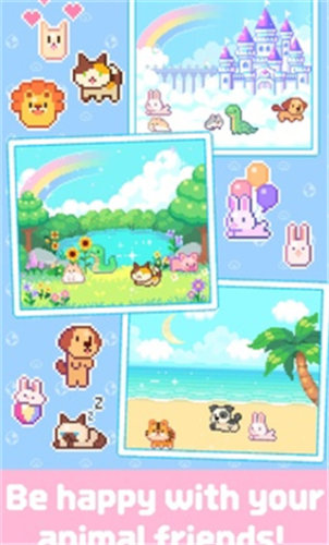 玩家从一个空旷的草地开始通过收集资源和完成基础任务逐步扩建动物乐园,不同种类的动物可在特定区域解锁如森林中的松鼠、池塘里的鸭子和山上的羊群。玩家可自由安置它们的住所,并根据天气变化调整饲料和活动空间。以点击、喂养和抚摸为主的互动,不同动物对食物的喜好各不相同而正确选择能提升亲密度。亲密度提升后动物会解锁新的动作、语音或行为,例如围绕玩家转圈亦或者是在夜晚入睡前发出轻声呼噜。乐园装饰部分有草丛、木屋、灯饰和风车等元素,玩家可利用金币或材料进行搭建且随着等级提升,可解锁更多场景和音效主题如落日森林或雪夜草原。