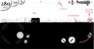 4、加油结束后按照提示再次起飞,途中会出现敌机时玩家可选择用右下角的空投炸弹和机枪攻击,空投时需要提前预判敌机位置否则容易打偏,如果不攻击直接飞过也不会判断玩家失败,但会缺少一次的试炼机会。