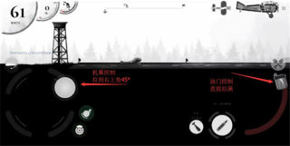 2、起飞后可观察左上角的时速、高度和油量等信息,中间上方则是关卡地图的指定点。等飞机升空并保持平稳后再将机翼摇杆调整至90度角,确保航线稳定。