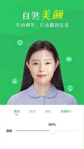 3、内置自然美颜修饰工具,支持磨皮美白瘦脸,让玩家拍得美又自然;