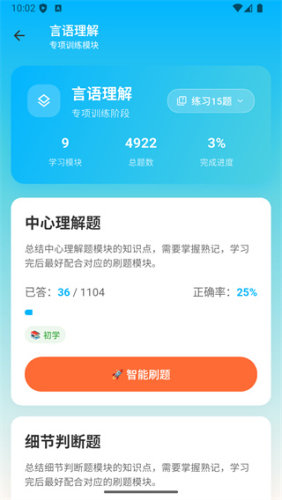 2、新增申论AI智能刷题和单项刷题,支持批改。