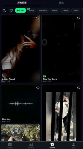 3、【多种素材】:提供超丰富的素材类型,有着动态的特效,热门模版,无声版权等,每日都更新,支持进行80中电影级别的转场效果;