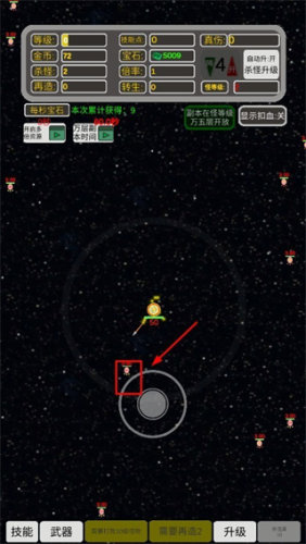 2、战斗中,通过红框里的虚拟摇杆控制角色移动,躲开敌人,同时调整自己的攻击位置。