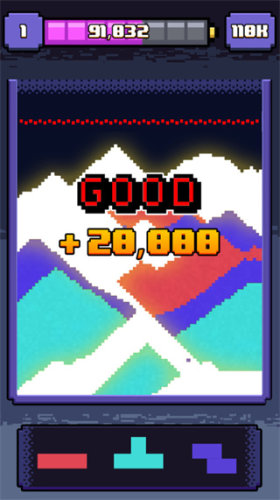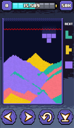 2、方块放下后会立刻碎成彩色的小沙粒,沙粒会根据重力自然往下滑动、堆积。