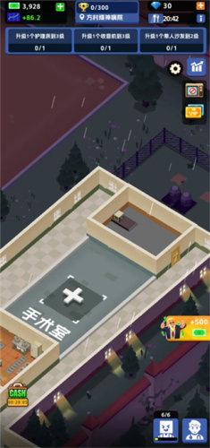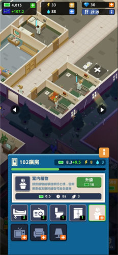 玩家将从医院入口处开始规划建造接待区、治疗区和休息区吸引病人前来就诊,每位病人都有不同需求和行为表现需安排合适的房间和医生进行治疗,治疗成功后可获得金币用于解锁新区域或购买设备。随着病人数量增多医院的工作量也会变大,玩家可以招聘护士提高接诊效率、清洁员负责维持环境整洁和医生协助工作,而医生的等级越高治愈率也越高。玩家还可以通过每日任务、特殊事件或节日活动获取额外资源例如限定家具或稀有设备,金币、声望和研究点是医院发展的三大关键要素,只需合理规划投资能让整体运营更稳定。