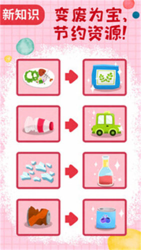 《宝宝垃圾回收》是一款非常有趣且深受大众们喜爱的儿童专属垃圾分类软件,通过了日常生活中的各个尝试来教导孩子们垃圾的分类,教导的过程中也是非常的有趣的,让孩子们可以更专注的在里面学习环保知识,也拥有非常多的环保小游戏让孩子们游玩噢。