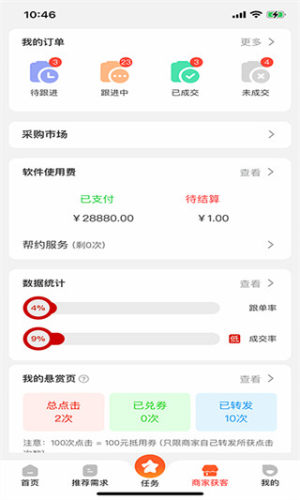 淘赏云客是一款做社会化需求分享的APP,用户将身边的需求分享给云客的服务商户,就可以获得相应的收益,淘赏云客专注中小企业获客,专注社会化资源分享,优化了服务需求方和服务供应方的资源配置,实现了让每一个消费者都可以成为商家服务的口碑传播者和客户推荐者,让每一个人都乐于分享身边的需求,并且服务于身边的需求,实现了C端用户和B端商户以及消费者都是平台直接受益者的商业模式。