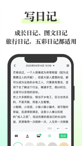 1、采用了文字以及图片相结合的方式进行记录,帮助用户更清晰和全面地记录精彩的生活;