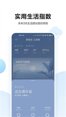 3、软件还提供防晒穿衣限行洗车等多种生活建议,科学又实用;