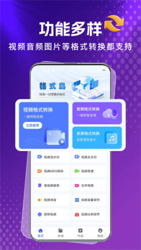 格式岛App是一款方便好用的文件转换工具,不管是音频、视频、文档还是图片,都可以轻松转换,不用担心格式不兼容,它还有一些实用的小功能,大家可以直接在App里操作,使用起来也特别方便。