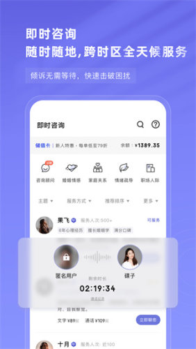 2、快速获得不同的心理咨询师的信息,了解咨询师擅长的服务;