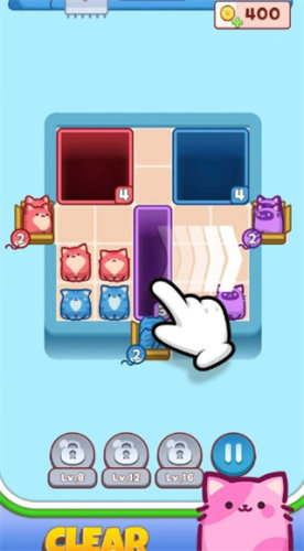 进入关卡后玩家只需滑动屏幕控制猫咪的移动方向,让它顺利滑到对应的出口即可完成。前几关主要是让玩家熟悉颜色和路径配对,后面则会加入更多机关需要提前规划路线。随着关卡推进玩家会遇到各种变化,比如可以传送的洞口、只能滑一次的路径还有需要两只猫同时行动的挑战。要想顺利通关就得合理安排顺序,让猫咪不被困住。完成关卡后能解锁不同的猫咪造型和装饰,丰富的个性化搭配让每次的挑战都变得更加的有趣。随着关卡数量的增加地图的设计会更加的多样化,七彩斑斓的色彩增加视觉体验的轻松感。