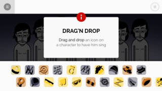 1、进入到游戏点击中间的按钮进行开始,进入到游戏里只需要通过简单的拖拽底下的装饰物到小人身上即可演奏你创作的音乐旋律;